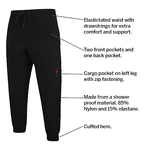 – Elasticated waist with drawstrings
